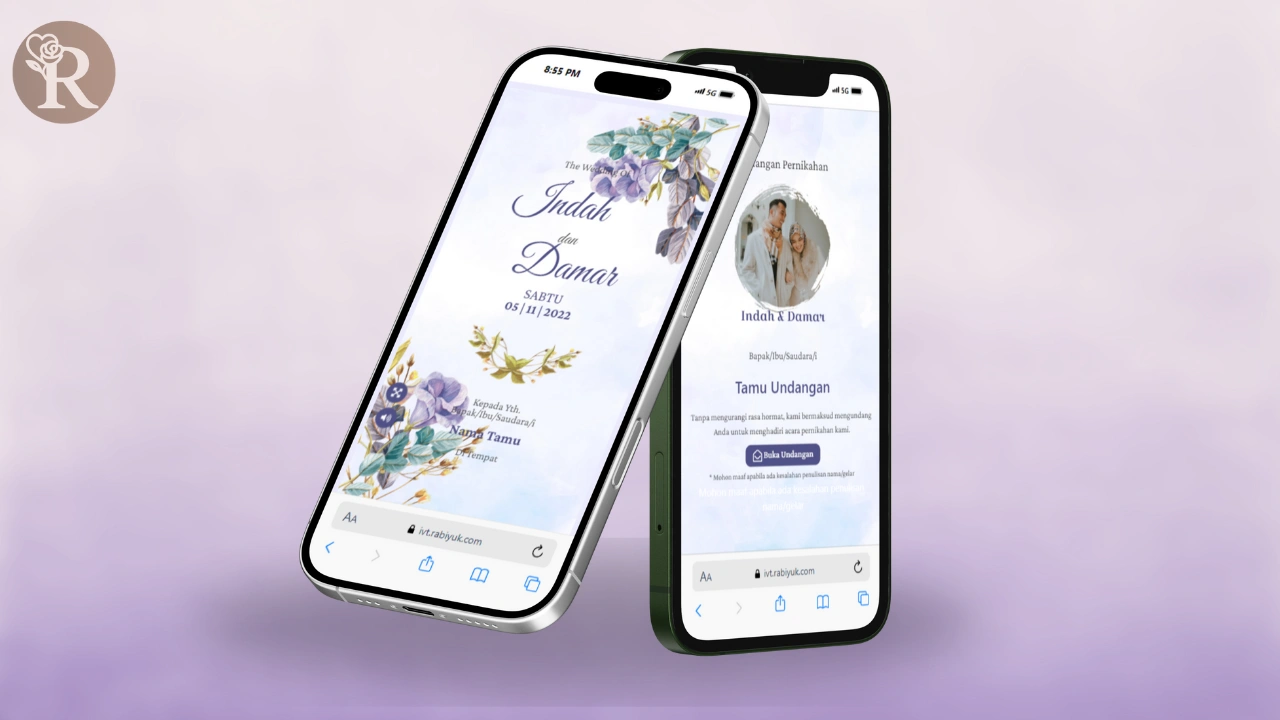 Tampilan floral memikat dengan kombinasi warna pastel dan ornamen lembut, membuat undanganmu tampil personal dan mengesankan secara visual.